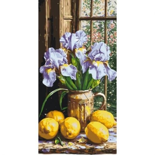 Опис Картина за номерами "Букет ірисів з лимонами" 40*80 см