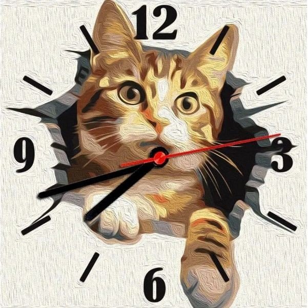 Опис Картина за номерами (годинник) "Кіт" 30х30 см