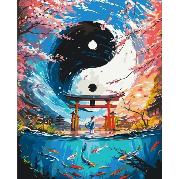 Опис Картина за номерами "Інь Янь з японськими мотивами" 40х50 см