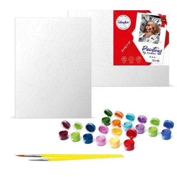 Картина за номерами. Для того, щоб намалювати картину, необхідно малювати за пронумерованими контурами, які відповідають кольору фарби. У наборі: полотно на підрамнику з галерейною натяжкою, паперовий дублікат з контурним малюнком картини (на картині нанесена схема контурів зображення з нумерацією), художні нейлонові пензлі, палітра акрилових фарб у контейнерах. Усі необхідні фарби вже в комплекті та не вимагають змішування. Розмір: 40х30 см.
