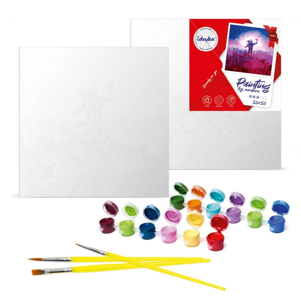 Картина за номерами. Для того, щоб намалювати картину, необхідно малювати за пронумерованими контурами, які відповідають кольору фарби. У наборі: полотно на підрамнику з галерейною натяжкою, паперовий дублікат з контурним малюнком картини (на картині нанесена схема контурів зображення з нумерацією), художні нейлонові пензлі, палітра акрилових фарб у контейнерах. Усі необхідні фарби вже в комплекті та не вимагають змішування. Розмір: 50х50 см.