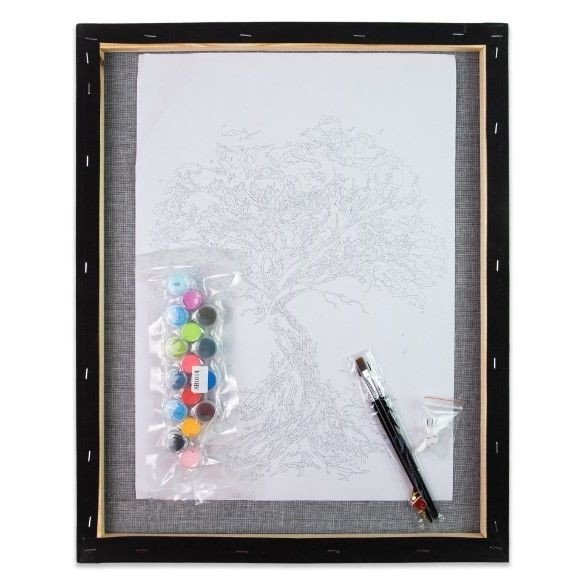 Картина за номерами на чорному фоні. Для того, щоб намалювати картину, необхідно малювати за пронумерованими контурами, які відповідають кольору фарби. У наборі: натуральне полотно на підрамнику з галерейною натяжкою, паперовий дублікат з контурним малюнком картини (на картині нанесена схема контурів зображення з нумерацією), нейлонові художні пензлі, палітра акрилових фарб у контейнерах. Усі необхідні фарби вже в комплекті та не потребують змішування. Розмір: 40х40 см.