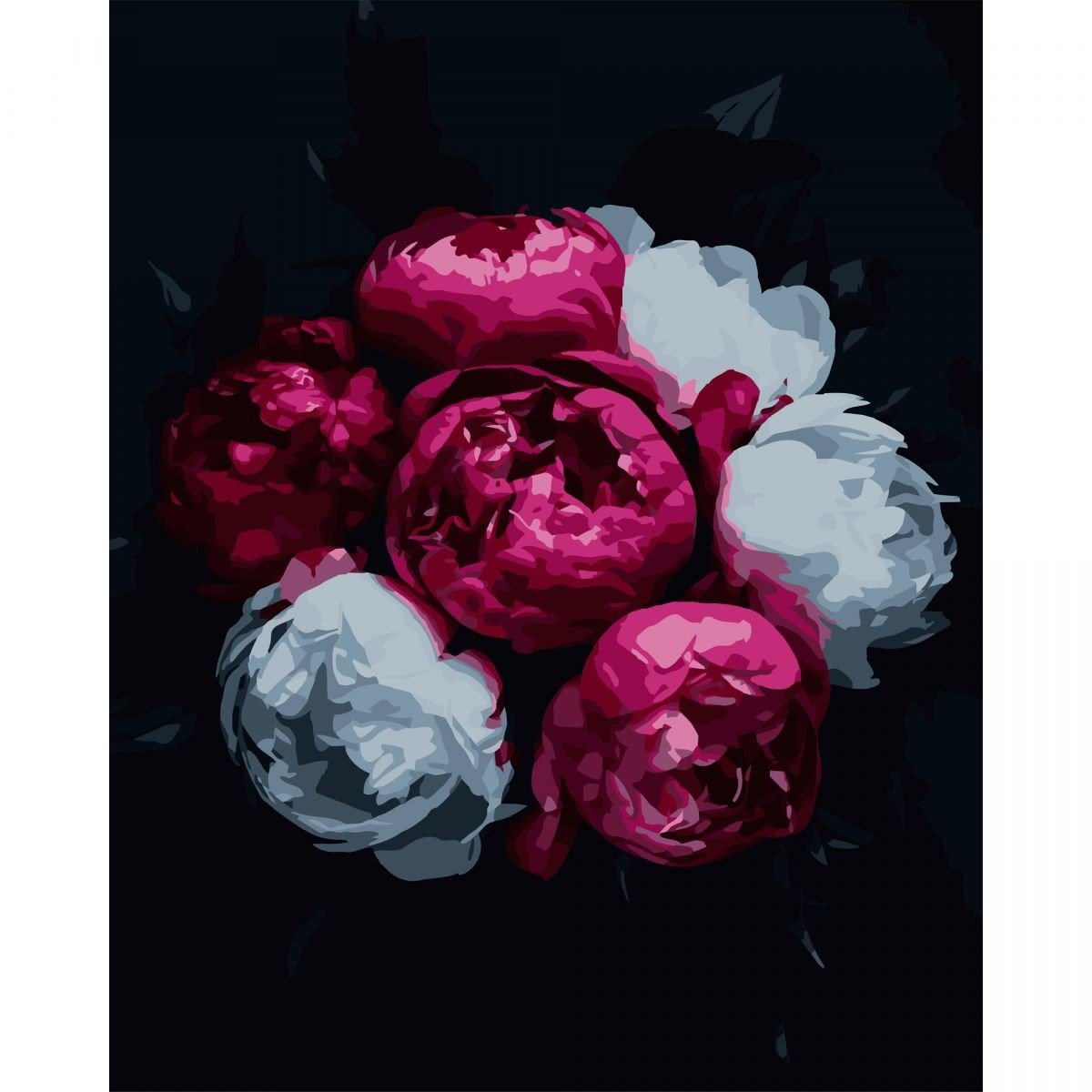 Картина за номерами на чорному фоні "Рожево-білі квіти" 40Х50 см