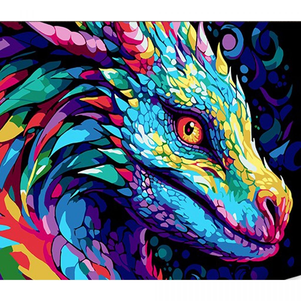 Опис Картина за номерами на чорному фоні "Яскравий образ дракона" 30х40