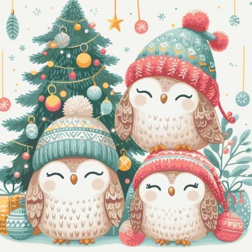 Опис Картина за номерами "Різдвяні совенята" 40х40 см