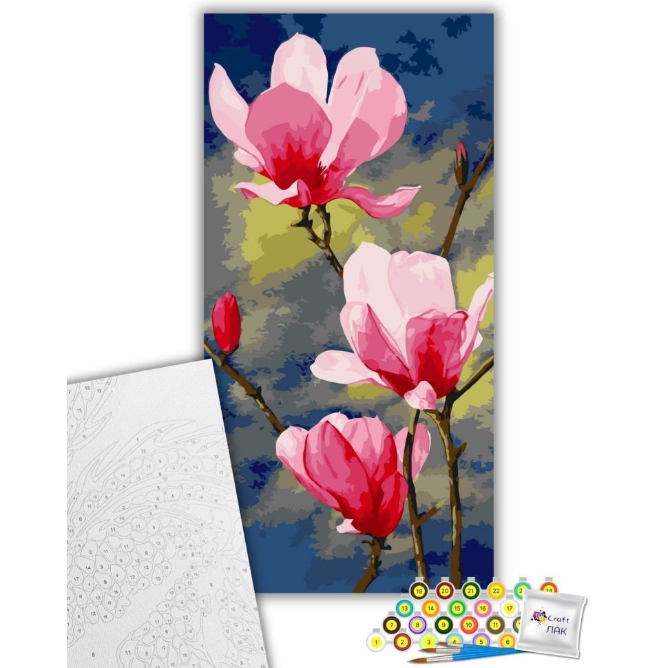 Опис Картина по номерах "Рожева магнолія" 40х80 см