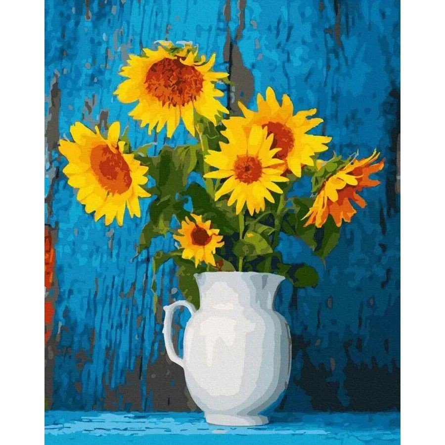 Опис Картина за номерами "Соняшники в білій вазі"