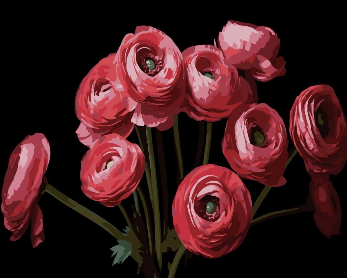 Опис Картина за номерами Strateg Букет ранункулюсів на чорному фоні 40Х50 (AH1260)