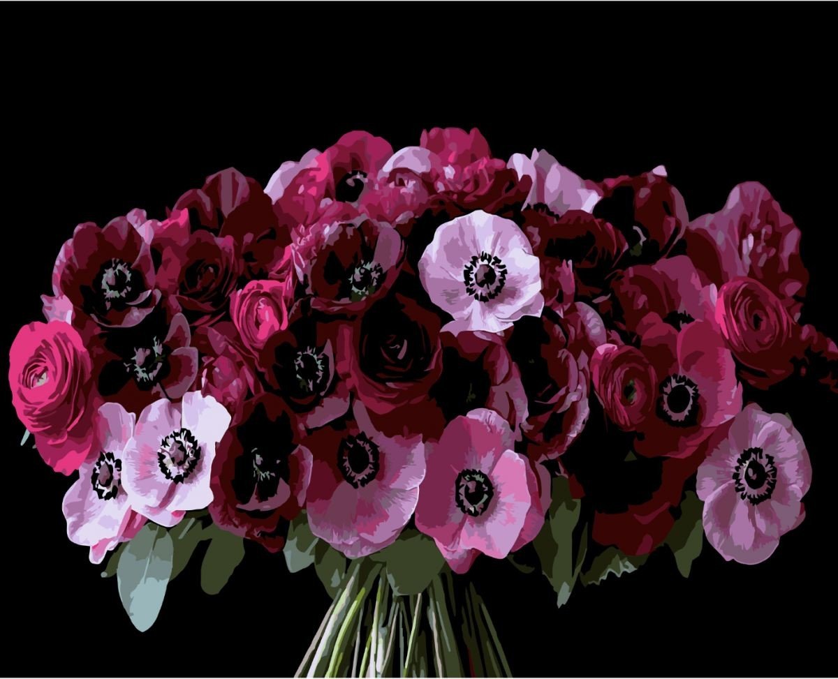 Опис Картина за номерами Strateg Червоні анемони на чорному фоні 40Х50 (AH1288)