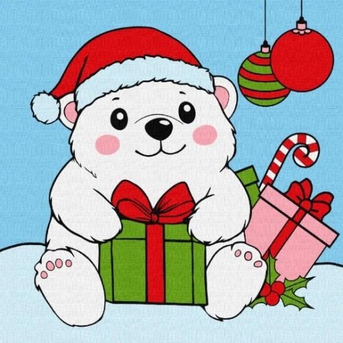 Опис Картина за номерами "Ведмедик з подарунком" 18х18см
