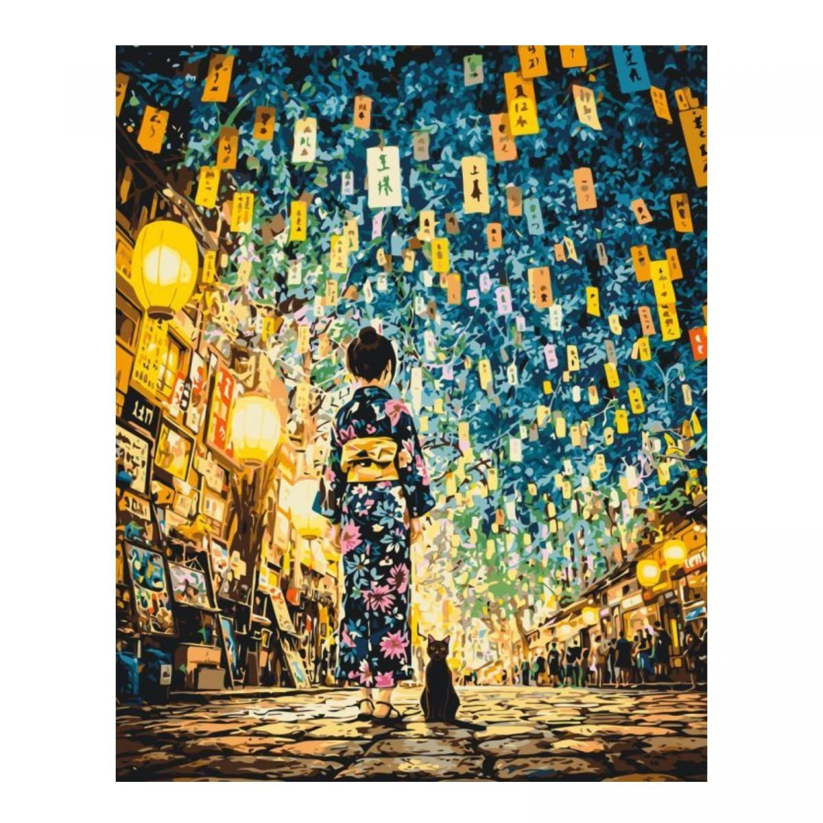 Опис Картина за номерами Японська ніч. Дівчина з котом 40*50 см