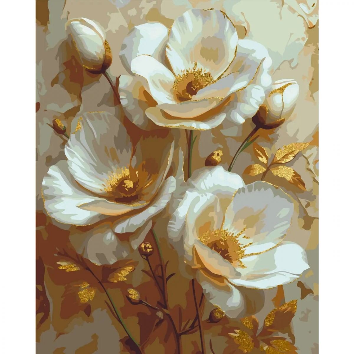 Опис Картина за номерами з фарбами металік "Білі квіти" 40х50