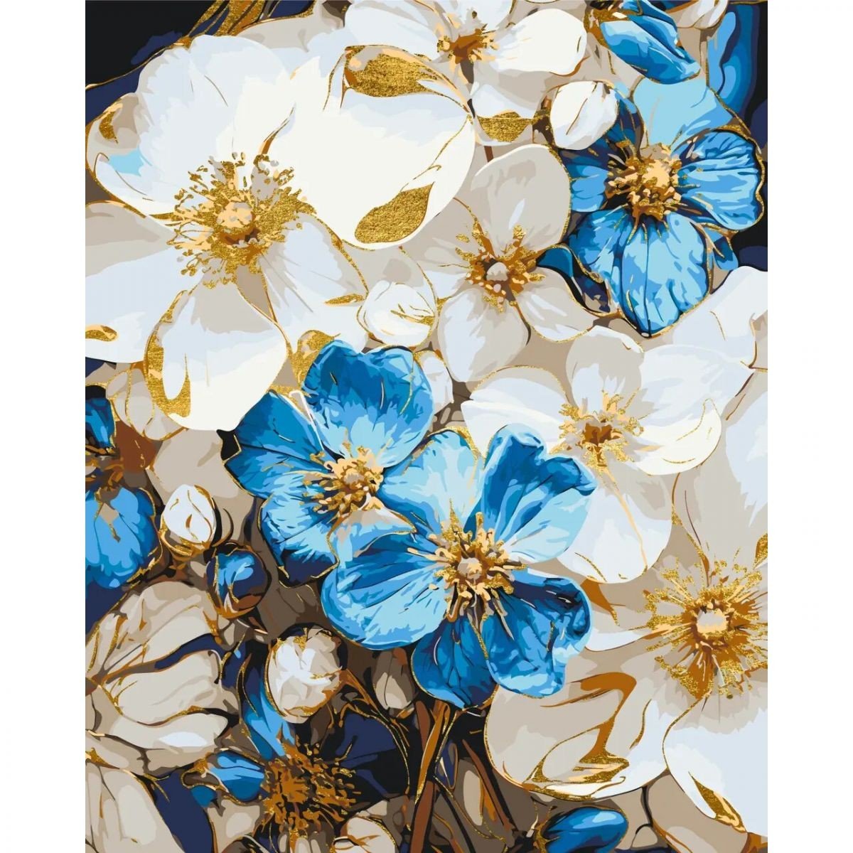 Опис Картина за номерами з фарбами металік "Біло-блакитні квіти" 40х50 см