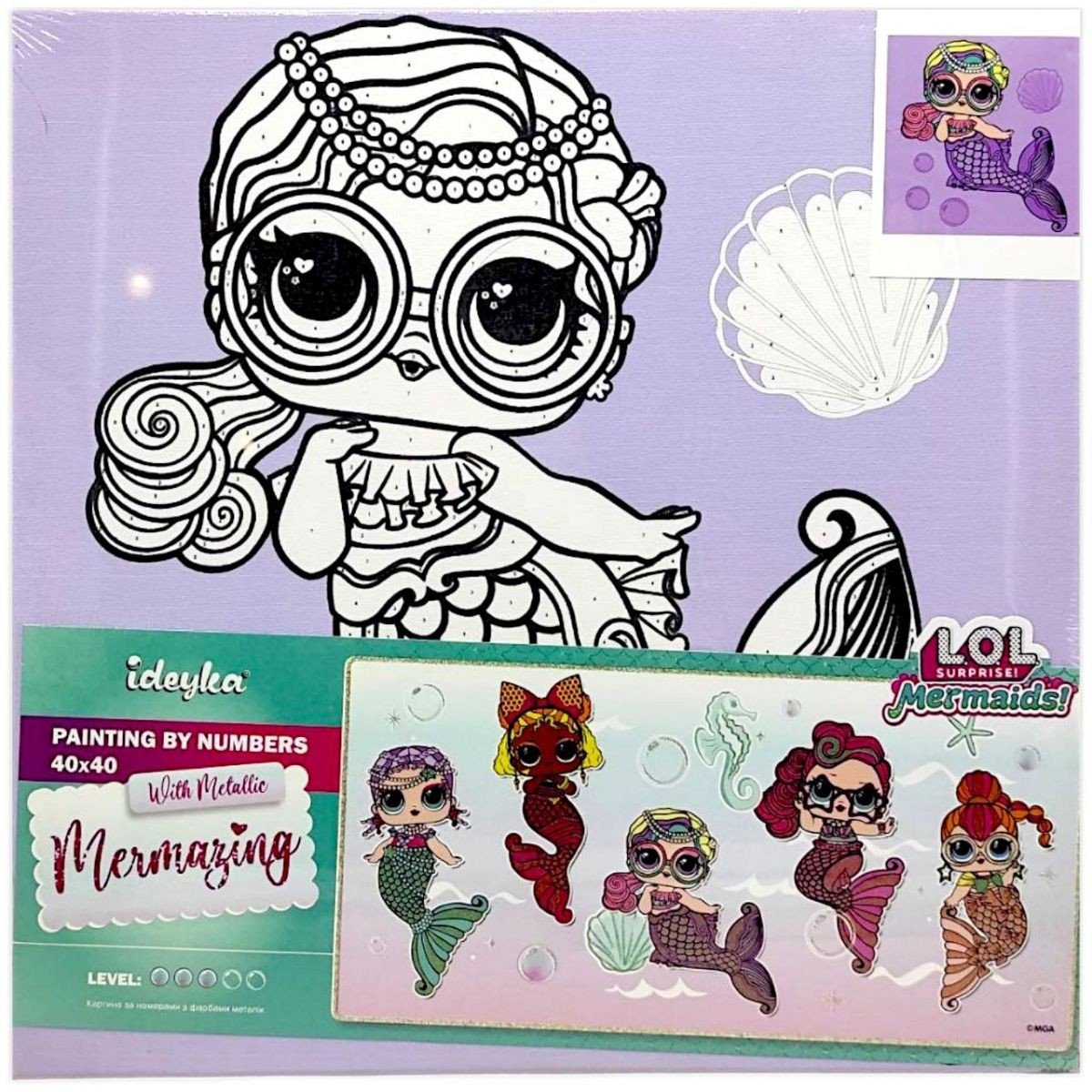 Опис Картина за номерами з фарбами металік "L.O.L. Surprise! Mermaids. Miss Sea" 40х40 см
