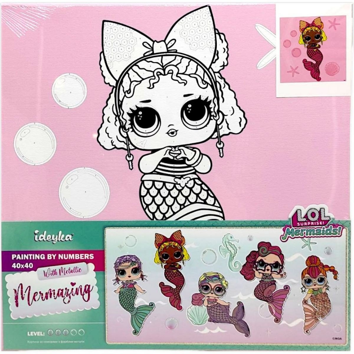Опис Картина за номерами з фарбами металік "L.O.L. Surprise! Mermaids. Queen Bee" 40х40 см