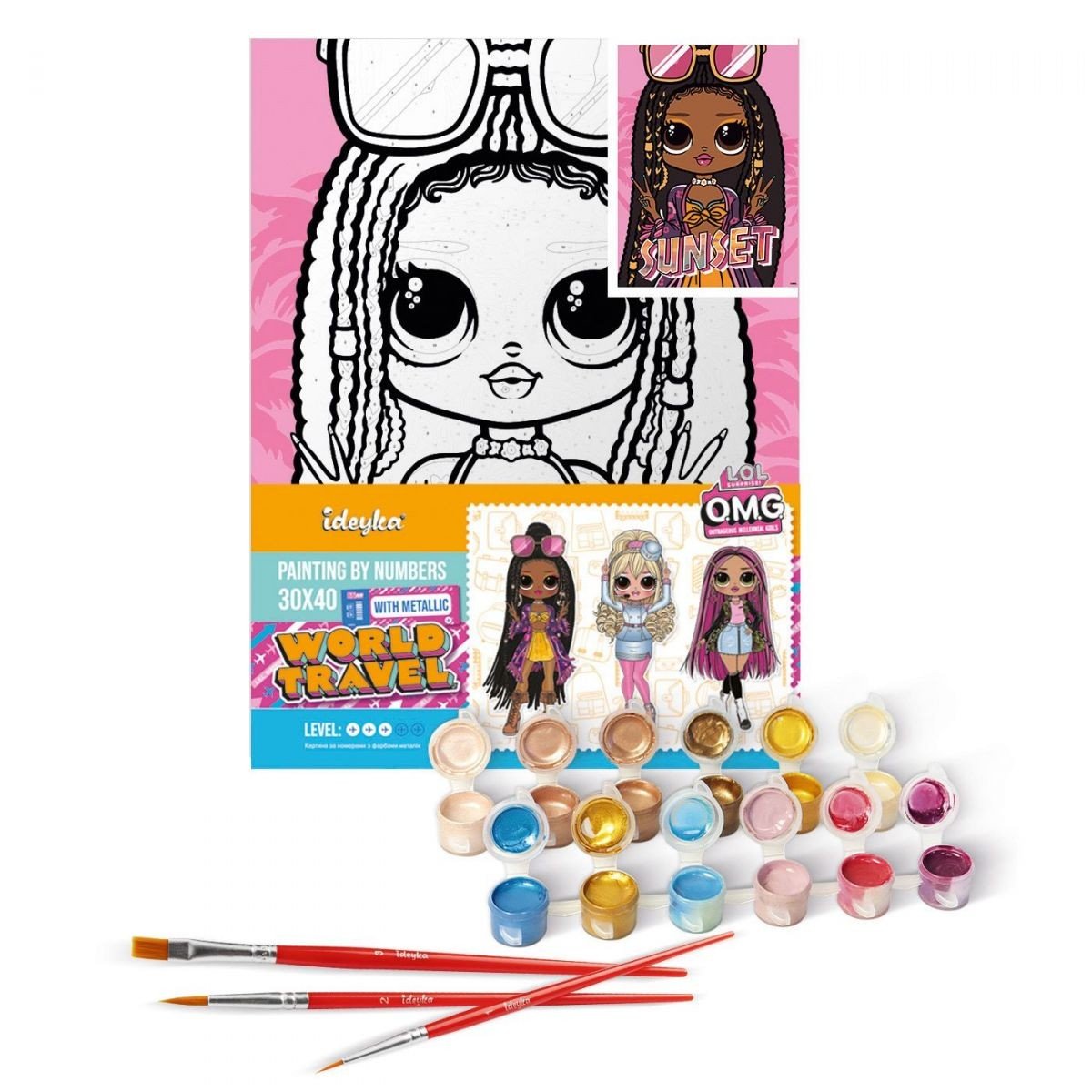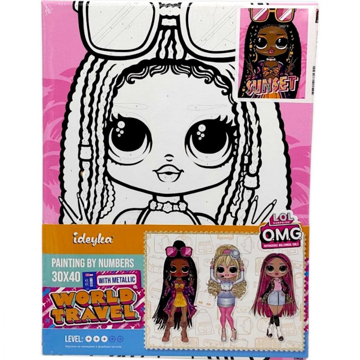 Опис Картина за номерами з фарбами металік "L.O.L. Surprise! O.M.G. World Travel. Sunset" 30х40 см