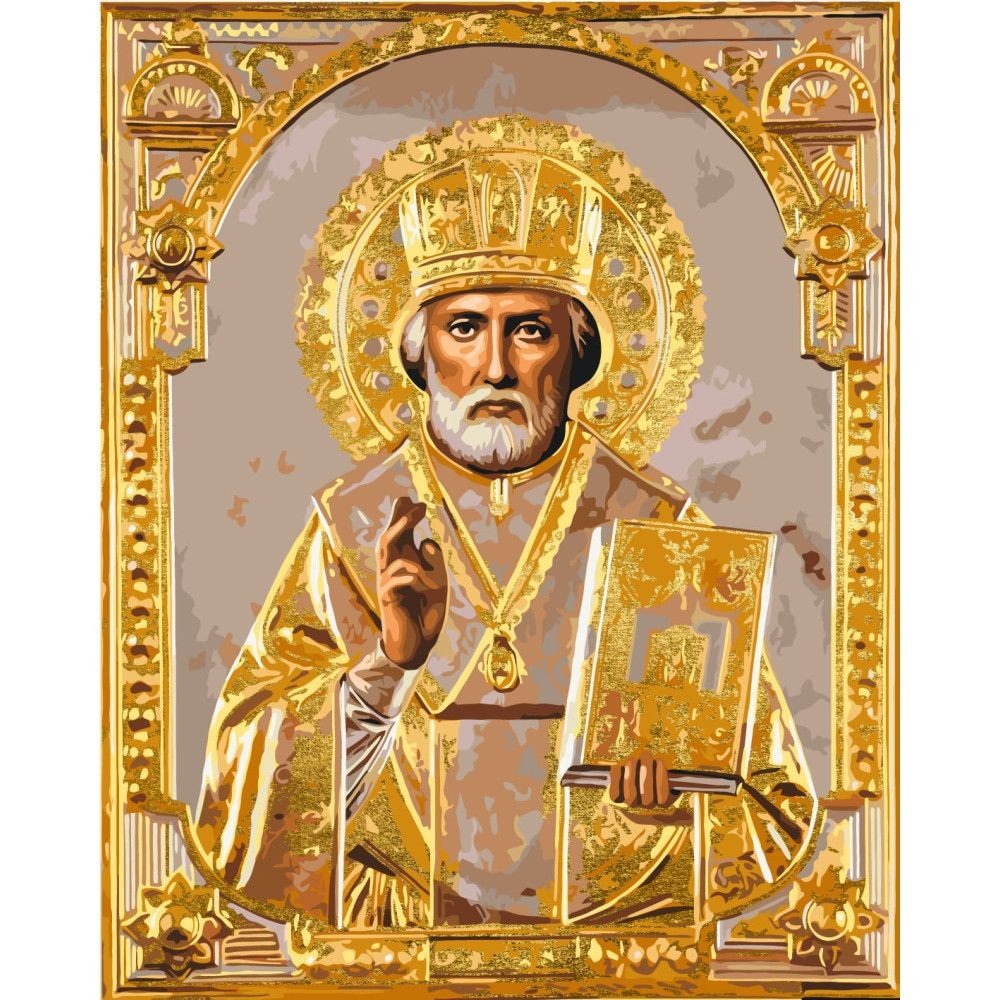 Опис Картина за номерами з фарбами металік "Ікона. Микола Чудотворець" 40х50 см