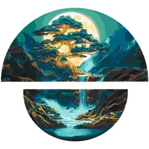 Опис Картина за номерами з фарбами металік "Магія нічного пейзажу" (напівкруги) 70*70 см