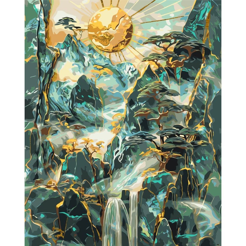 Опис Картина по номерах з фарбами металік "Ранкові гори" 40х50 см
