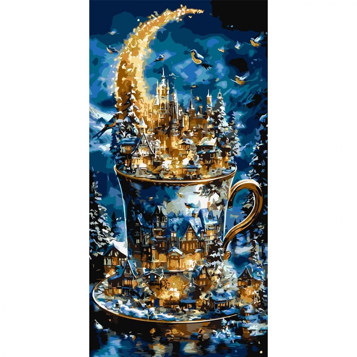 Опис Картина за номерами з фарбами металік "Різдвяне казкове місто" 40х80 см