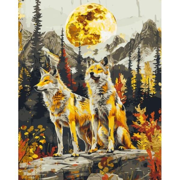 Опис Картина по номерах з фарбами металік "Пара вовків" 40х50 см