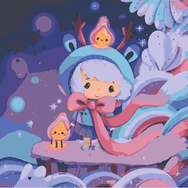 Картина за номерами. Для того, щоб намалювати картину, необхідно малювати за пронумерованими контурами, які відповідають кольору фарби. У наборі: полотно на підрамнику з галерейною натяжкою, паперовий дублікат з контурним малюнком картини (на картині нанесена схема контурів зображення з нумерацією), художні нейлонові пензлі, палітра акрилових фарб у контейнерах, зі світлодіодною підсвіткою. Усі необхідні фарби вже в комплекті та не вимагають змішування. Розмір: 25х25 см.