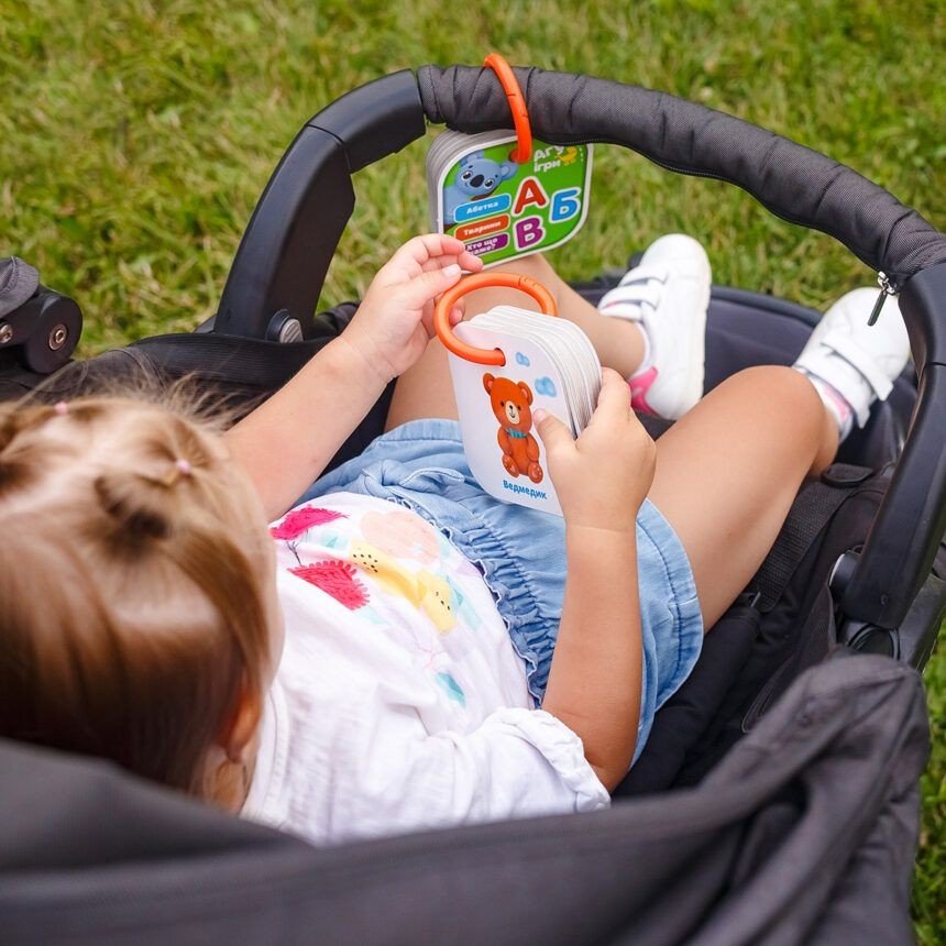 Вивчайте разом з малюком абетку. А також знайомте його з тваринами та їхніми назвами. Виконуйте разом цікаві завдання Набір складається із 24-х двосторонніх карток на пластиковому кільці, яке можна прикріпити до ліжечка чи коляска, або просто тримати у руці.