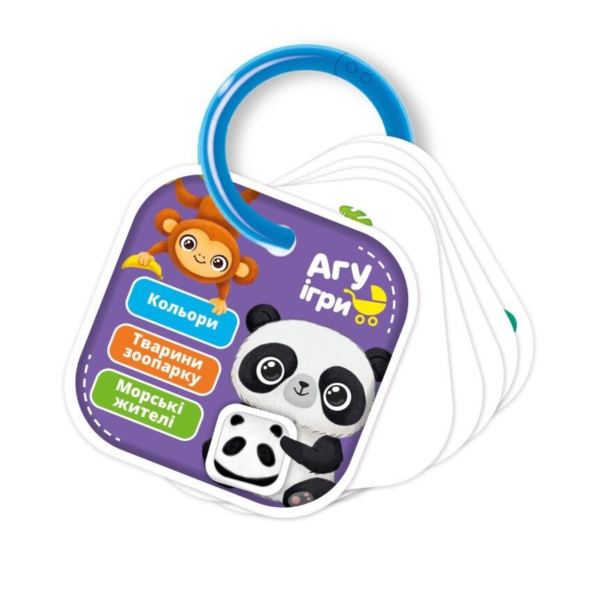 Вивчайте разом з малюком кольори, забарвлення тварин та їх назви. А також знайомте його з сухопутними тваринами та жителями підводного світу. Виконуйте разом цікаві завдання Набір складається із 24-х двосторонніх карток на пластиковому кільці, яке можна прикріпити до ліжечка чи коляска, або просто тримати у руці.