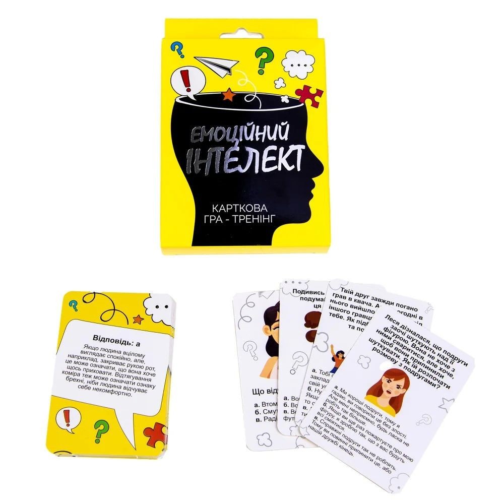 Розвинутий емоційний інтелект - найактуальніша навичка 21-го століття. Вона допомагає не тільки правильно розуміти свої та чужі емоції, а й легше адаптуватися до різних подій. На ігрових картках описані ситуації та варіанти їхнього розвитку, і тобі потрібно вибрати такий, який вважаєш найліпшим. А вже на звороті карток є коротке пояснення, який саме варіант вважається прийнятним у суспільстві і чому.