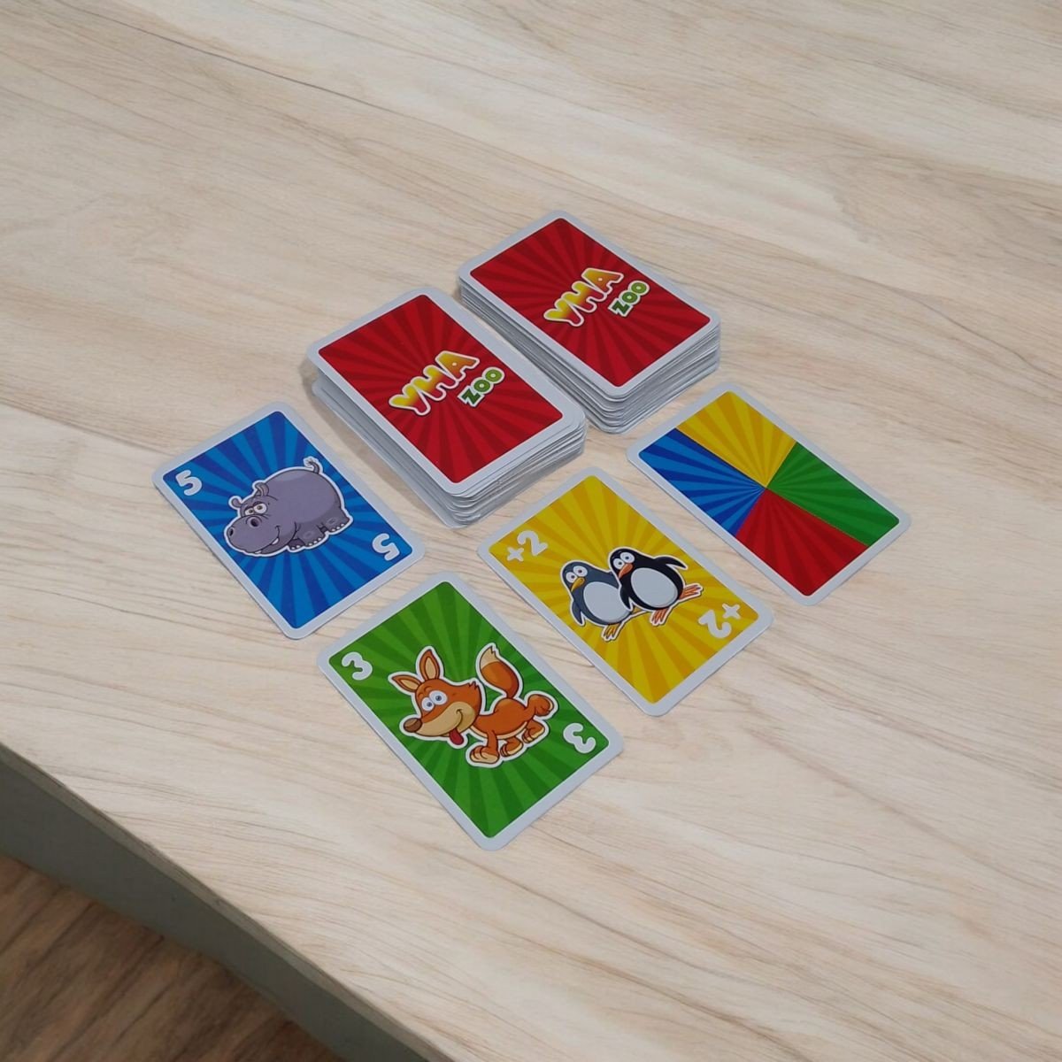 Карткова настільна гра УНО (UNO). Колода для гри в Уно містить карти з цифрами від 0 до 9 чотирьох кольорів, а також - спеціальні: «Пропусти хід», «Навпаки», «Візьми дві», «Замов колір» і «Замов колір і візьми чотири». Кожному роздається по 7 карт, після чого закладається одна для скидання. Мета гри - першим позбутися всіх карт.