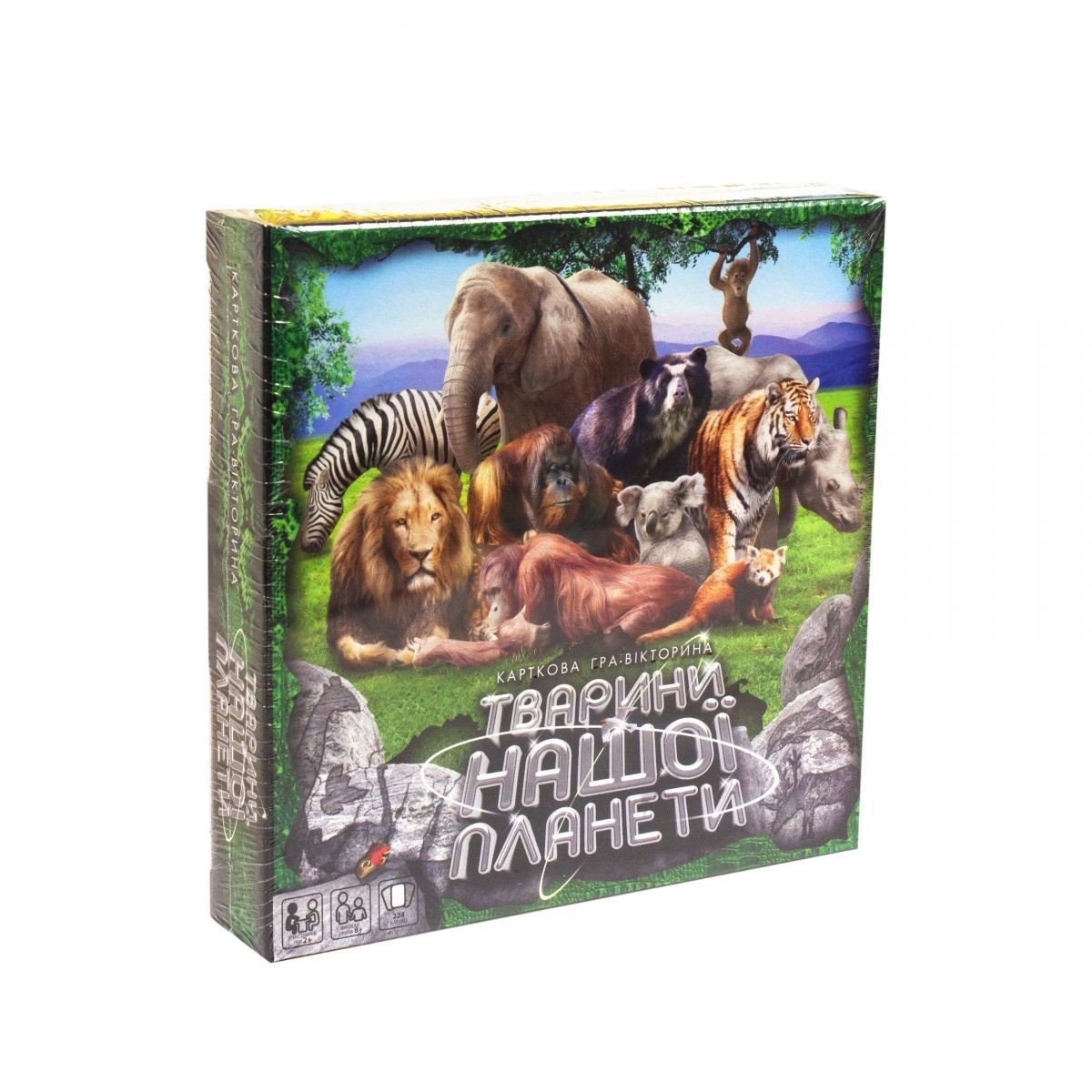 Карткова гра-вікторина "Тварини нашої планети". Граючи в цю гру, учасники розчиняючись в веселому азартні, отримають безцінний багаж знань в галузі зоології та географії. Зустрітися з дивовижними фактами і пориньте в море Нових знань про тварин, які проживають на планеті Земля. У наборі: ігрові картки (224 штуки), карта тваринного світу, картинка-пазл, правила гри.