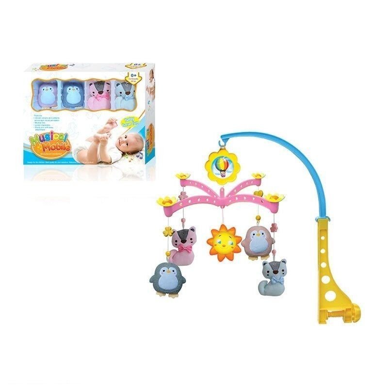 Карусель 5 мʼяких підвісок, мелодія, обертання, заводний механізм, в коробці