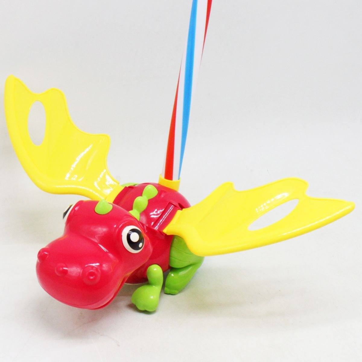 Пластикова каталка із ручкою у вигляді динозаврика. У наборі є крильця, які потрібно вставити в спеціальні отвори з обох боків іграшки. Під час руху динозаврик рухає крилами та лапками. Розмір іграшки (без ручки) – 17х14х40 см. Висота разом з ручкою – 54 см. Виконана з якісного пластику. Для дітей віком від 4-х років.