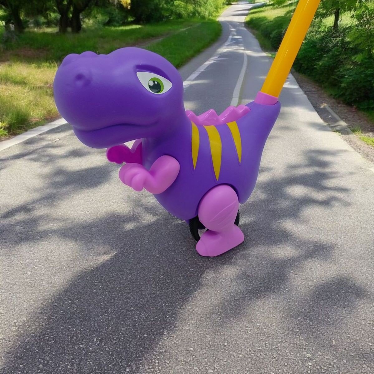 Опис Каталка дитяча "Динозавр", з ручкою (фіолетовий)