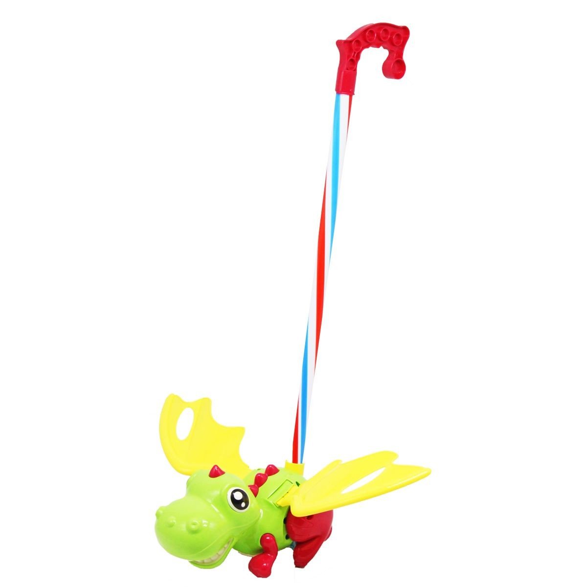 Пластикова каталка із ручкою у вигляді динозаврика. У наборі є крильця, які потрібно вставити в спеціальні отвори з обох боків іграшки. Під час руху динозаврик рухає крилами та лапками. Розмір іграшки (без ручки) – 17х14х40 см. Висота разом з ручкою – 54 см. Виконана з якісного пластику. Для дітей віком від 4-х років.