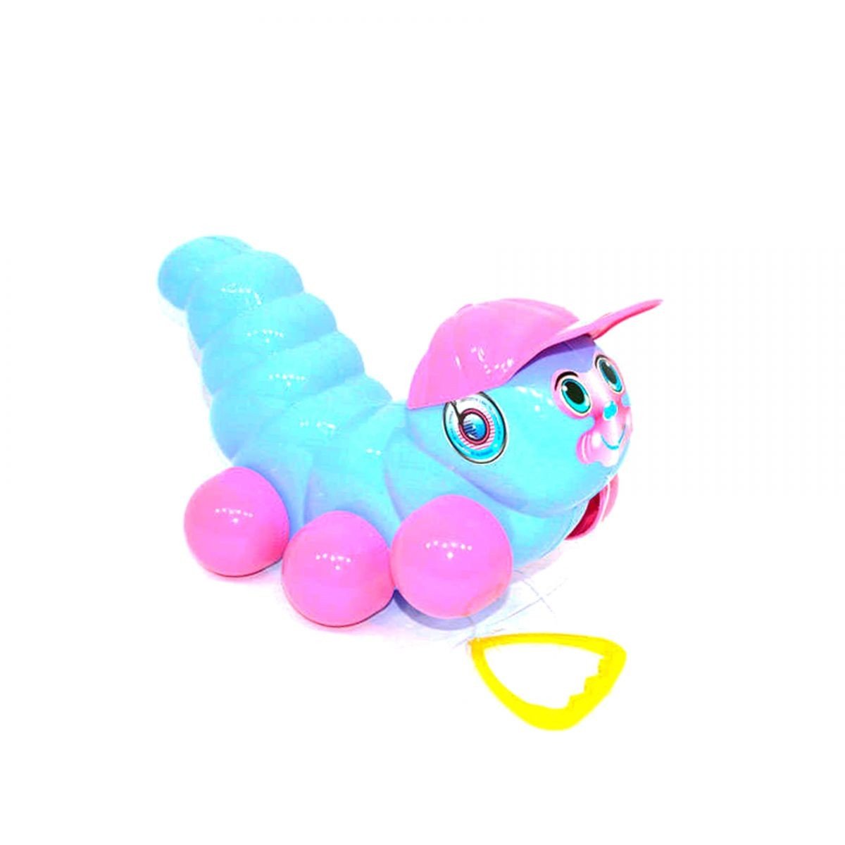 Пластикова каталка у вигляді гусениці з ручкою на мотузочці. При русі - крутяться "лапки-коліщатка".