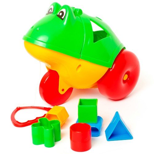 Каталка логіка "Жаба". Каталка-сортер, на шнурочку, 3 колеса. 6 геометричних фігур. На шнурочку.
