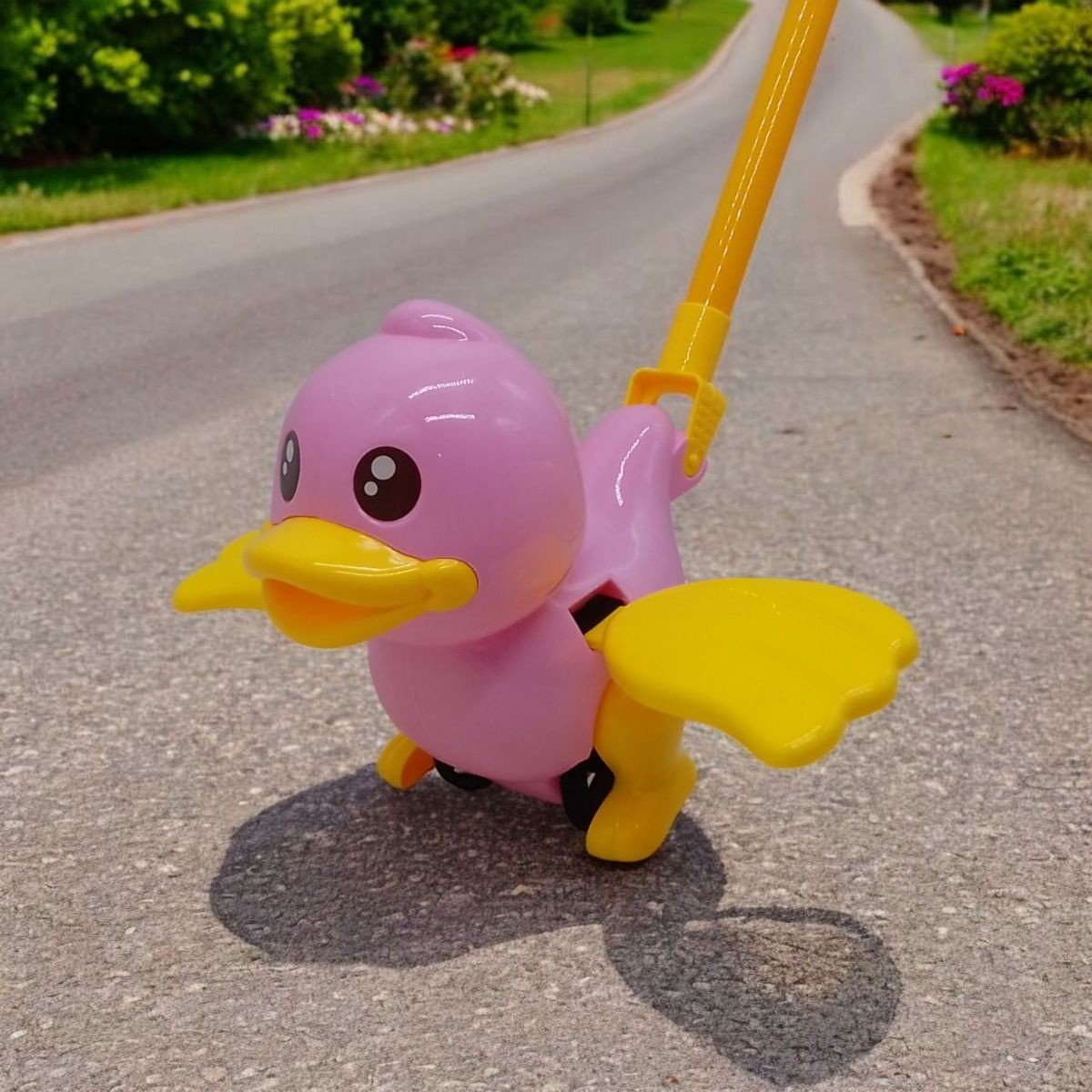 Каталка на паличці з ручкою "Каченя" – яскрава іграшка для малюків, яка зробить прогулянки ще цікавішими! Під час руху каченя весело махає крильцями та видає звук дзвіночка. Зручна ручка дозволяє дитині легко керувати іграшкою. Висота від підлоги до ручки – 58 см. Ідеальний вибір для активних ігор та розвитку координації!