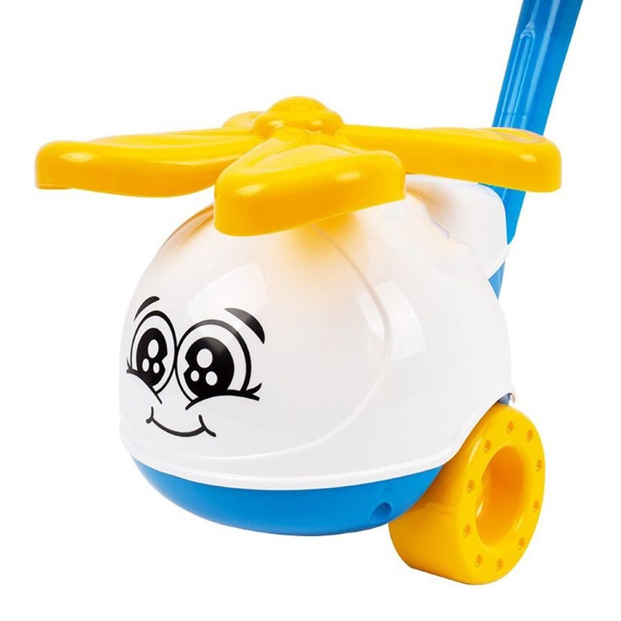 Яскрава пластикова каталка у вигляді гелікоптера. Оснащена міцною ручкою заввишки 65 см. Вертоліт їздить, гвинт обертається. Виконаний з якісних та міцних матеріалів, каталка міцна та довговічна. Обовʼязково порадує дитину, можна грати як вдома, так і на прогулянці. Розмір іграшки: 30х17х65 см.