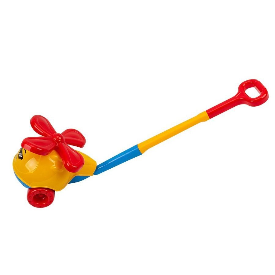 Яскрава пластикова каталка у вигляді гелікоптера. Оснащена міцною ручкою заввишки 65 см. Вертоліт їздить, гвинт обертається. Виконаний з якісних та міцних матеріалів, каталка міцна та довговічна. Обовʼязково порадує дитину, можна грати як вдома, так і на прогулянці. Розмір іграшки: 30х17х65 см.