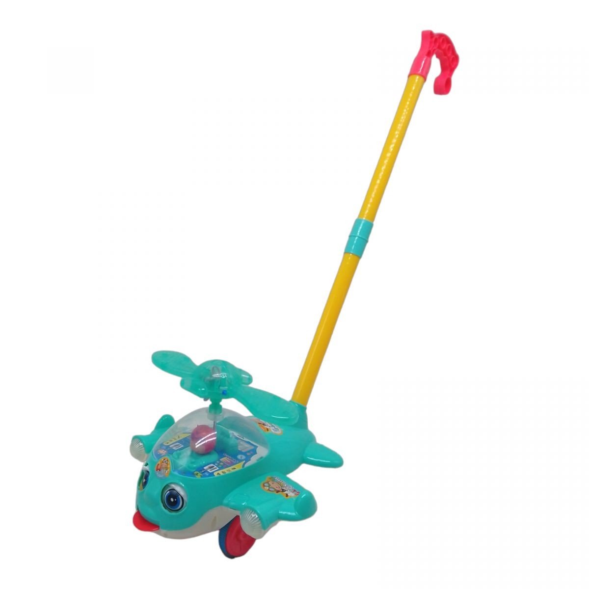 Незвичайна дитяча каталка у вигляді гвинтокрила зі гвинтами, що світяться різними кольорами. У русі лопаті обертаються на 360 градусів, вертоліт моргає і висовує язик. Зі звуком дзвіночка. Розмір вертольота – 22х22х17 см. Висота від підлоги до ручки – 50 см. Іграшка допоможе дитині розвивати координацію рухів, уважність, логіку та фантазію.