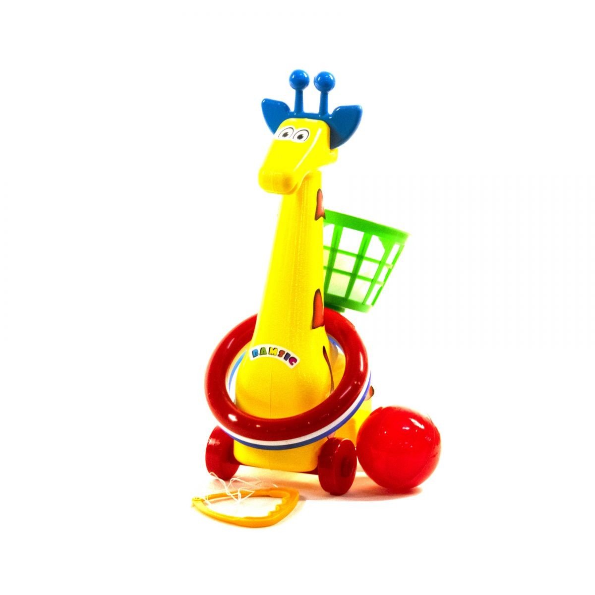 Кільцекид на колесах "Жираф". Розвиває точність і влучність. 2 варіанти гри: закинути колечка на шию жирафа, або ж м'ячики в кошик.