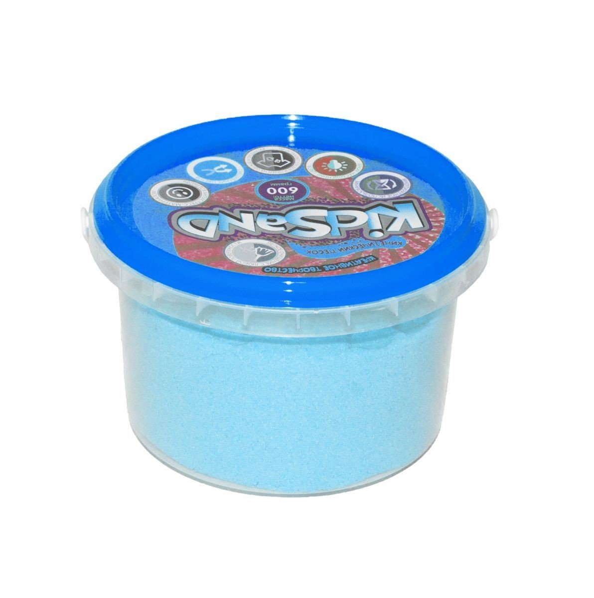 Кінетичний пісок "KidSand", 600 г. Такий пісок прекрасно тримає будь-яку форму, швидко розпадається при необхідності, а його будова відрізняється одночасно пористістю і міцністю. За відчуттями такий пісок нагадує сирий морський пісок, тільки він без води, не прилипає до рук, не забруднює одяг.