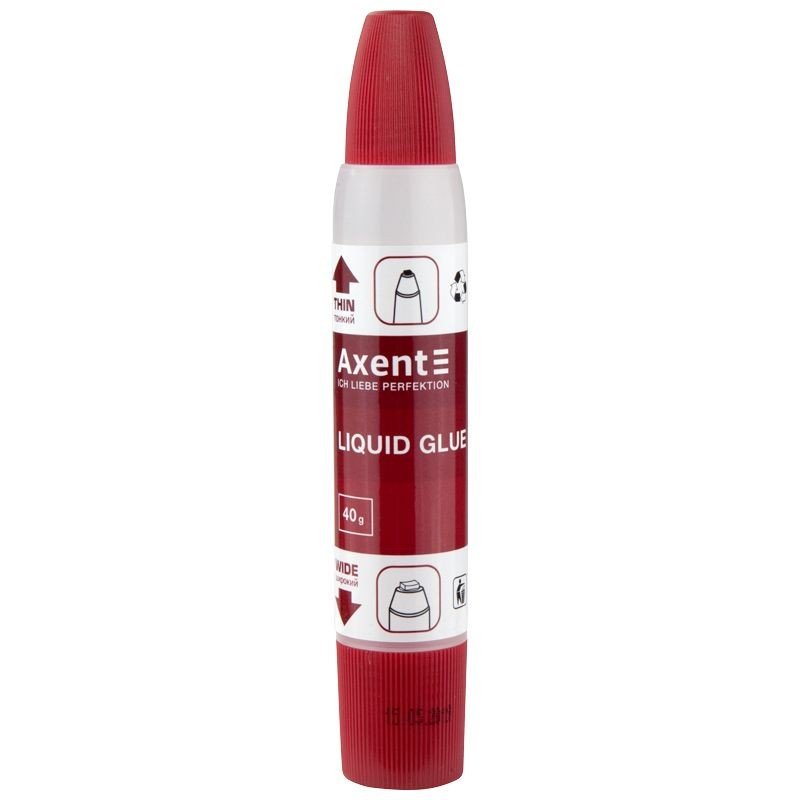 Клей рідкий. Підходить для склеювання паперових виробів. Має форму олівця. Є 2 аплікатора для нанесення, що робить його максимально зручним у використанні. 40 грам.