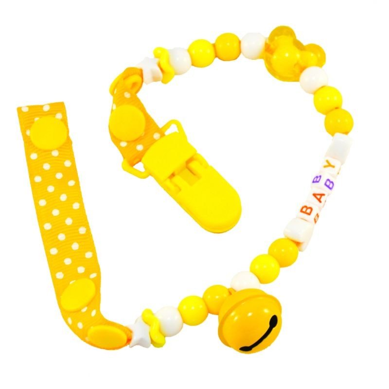 Кліпса з шнурочком для пустушки це корисний аксесуар. Його зручність полягає в тому, що соска вашого малюка завжди поруч, адже кліпса кріпиться до його одязі і не доставляє дискомфорту. До кліпсі прикріплений дзвіночок.