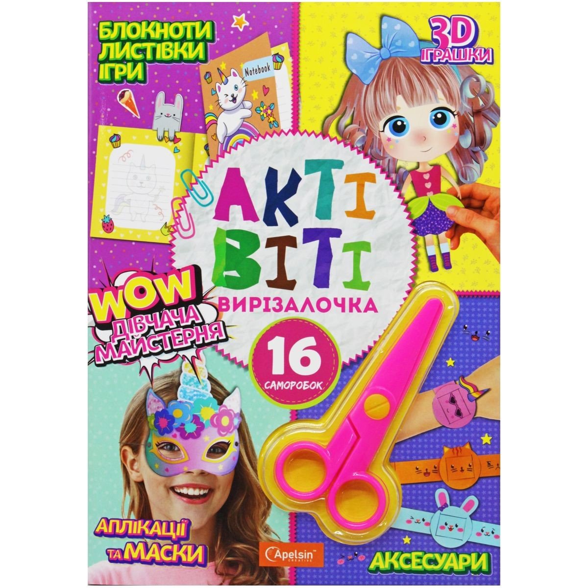 Незвичайна і захоплююча книга саморобок "Актівіті-вирізалочка". Тут зібрані найцікавіші колекції готових ідей, щоб власноруч зробити саморобки, 3д іграшки, маски, аксесуари, ігри, листівки та інші цікавинки. Створюй круті саморобки весело та просто: вирізай вже готові елементи й послідовно дотримуйся інструкції. Нічого не треба придумувати, або шукати додаткові деталі чи матеріали, просто вирізай - згинай - приклеюй - грайся. Тобі в допомогу зразок-підказка готового виробу, при потребі паперові заготовки можна наклеїти на картон. Ножиці вже є в наборі.