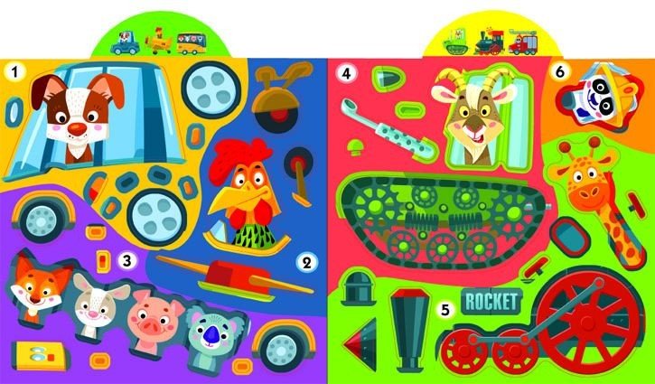 Яскрава дитяча книжечка з великими і барвистими наклейками, за допомогою яких можна доповнювати ілюстрації. 10 сторінок. Мова: український.