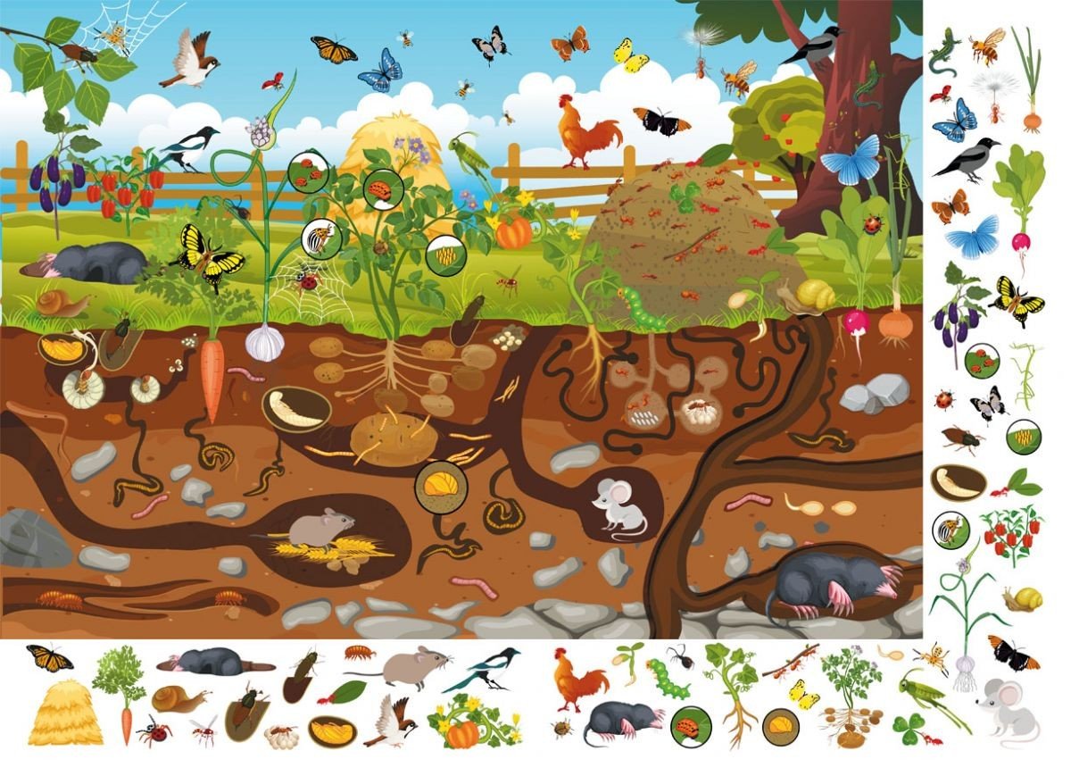 Книжки-віммельбухи, незважаючи на відсутність тексту, допомагають розвинути мовлення малюка. У них немає сюжету, але його можна придумати, розглядаючи картинки з найдрібнішими мешканцями нашої планети і фантазуючи разом із дитиною.У виданнях такого формату використовуються елементи гри, які розвивають память та уважність. У цій книжці ми пропонуємо юному читачеві роздивитися малюнки, розташовані на білому полі сторінки, а потім знайти їх на кольоровій картинці.