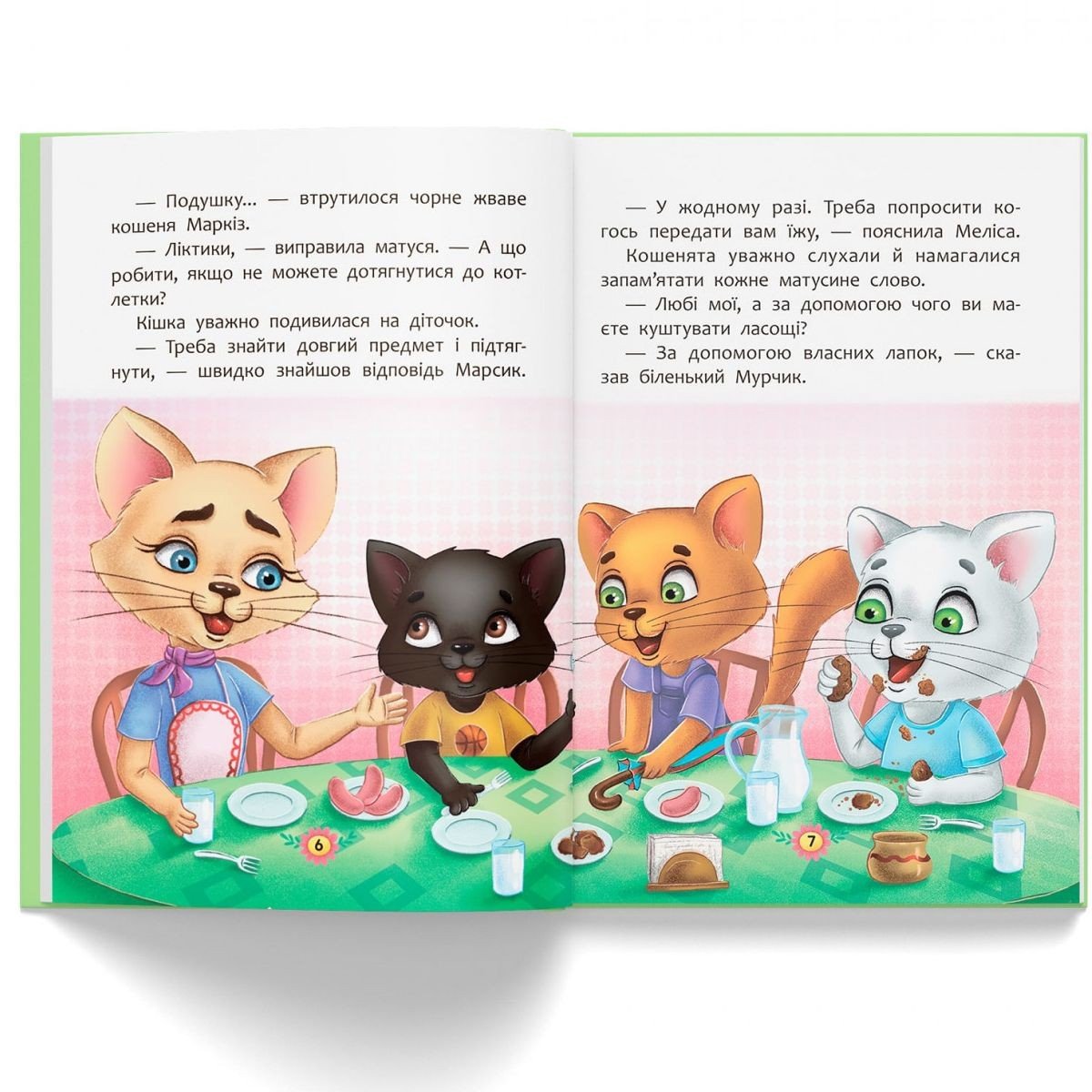 Дорогий друже! Ми розповімо тобі повчальні історії про ввічливу поведінку та правила етикету. Ти познайомишся з кошенятами, які не знали, як тримати себе за столом, проте дуже хотіли потрапити в гості до свого друга. Прочитаєш про ведмедика, який не вмів чемно приймати гостей і дуже засмутився, що більше ніхто до нього не навідується. Познайомишся з ховрашком, який поводився неввічливо на святі в більченяти й залишився без запрошення в гості. Наші маленькі герої вчасно зрозуміли, як важливо знати правила етикету. Розгортай книжку й читай казки про звірят, які з легкістю опанували чемну поведінку.