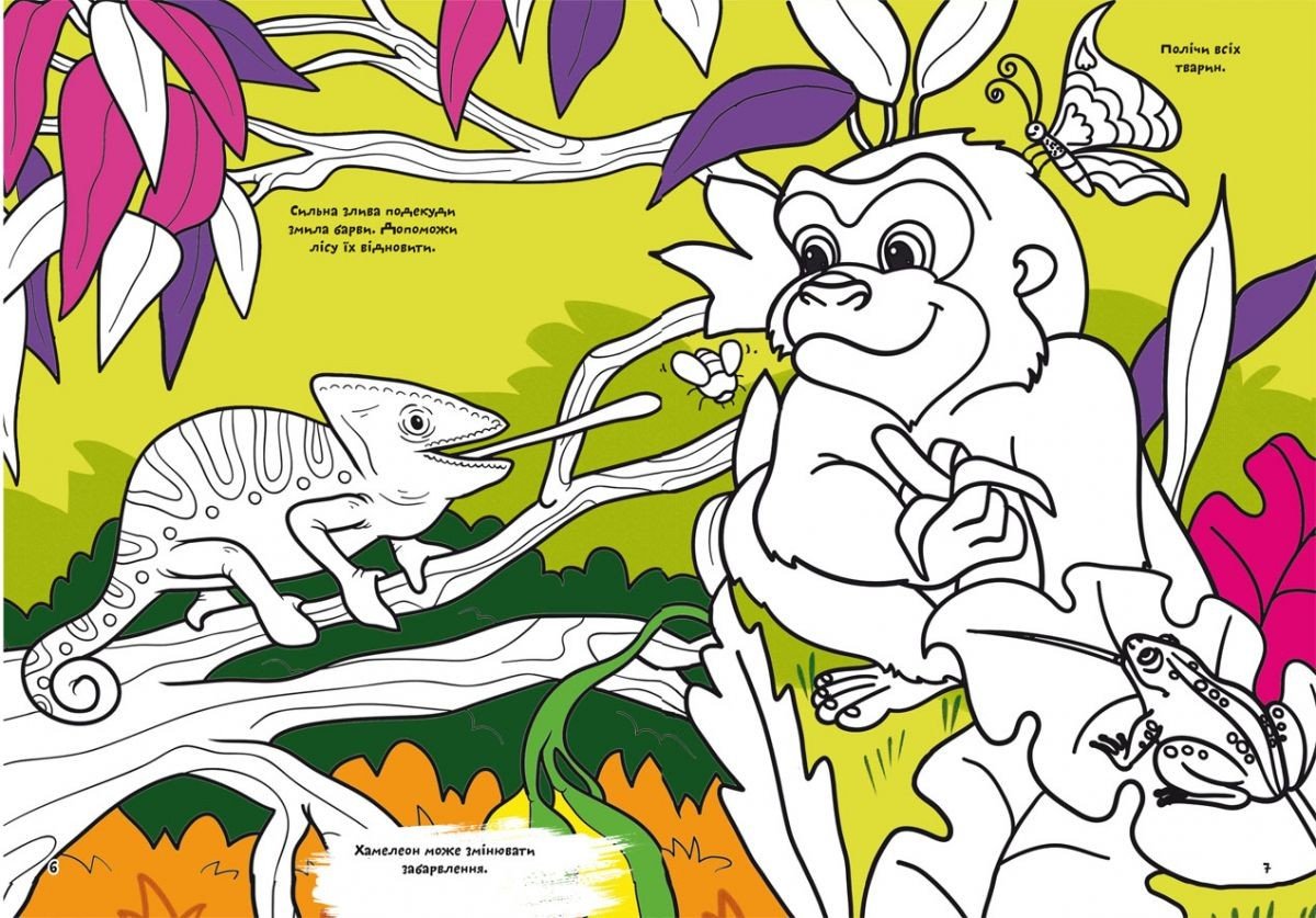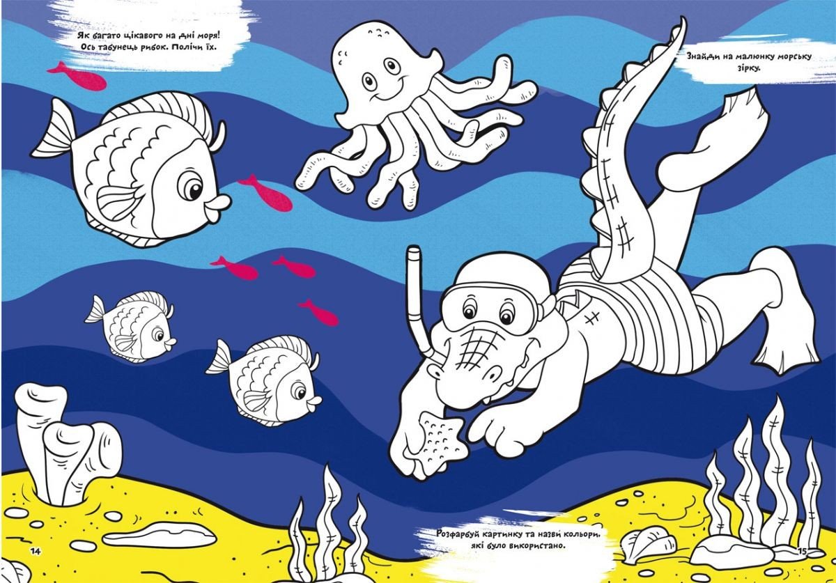 Розмальовки допоможуть зробити дозвілля малюка захоплюючим. Малювання удосконалює дрібну моторику, уяву і увагу. Правильно підібрати кольори малюкові допоможуть зразки, що знаходяться в книзі. 16 сторінок.
